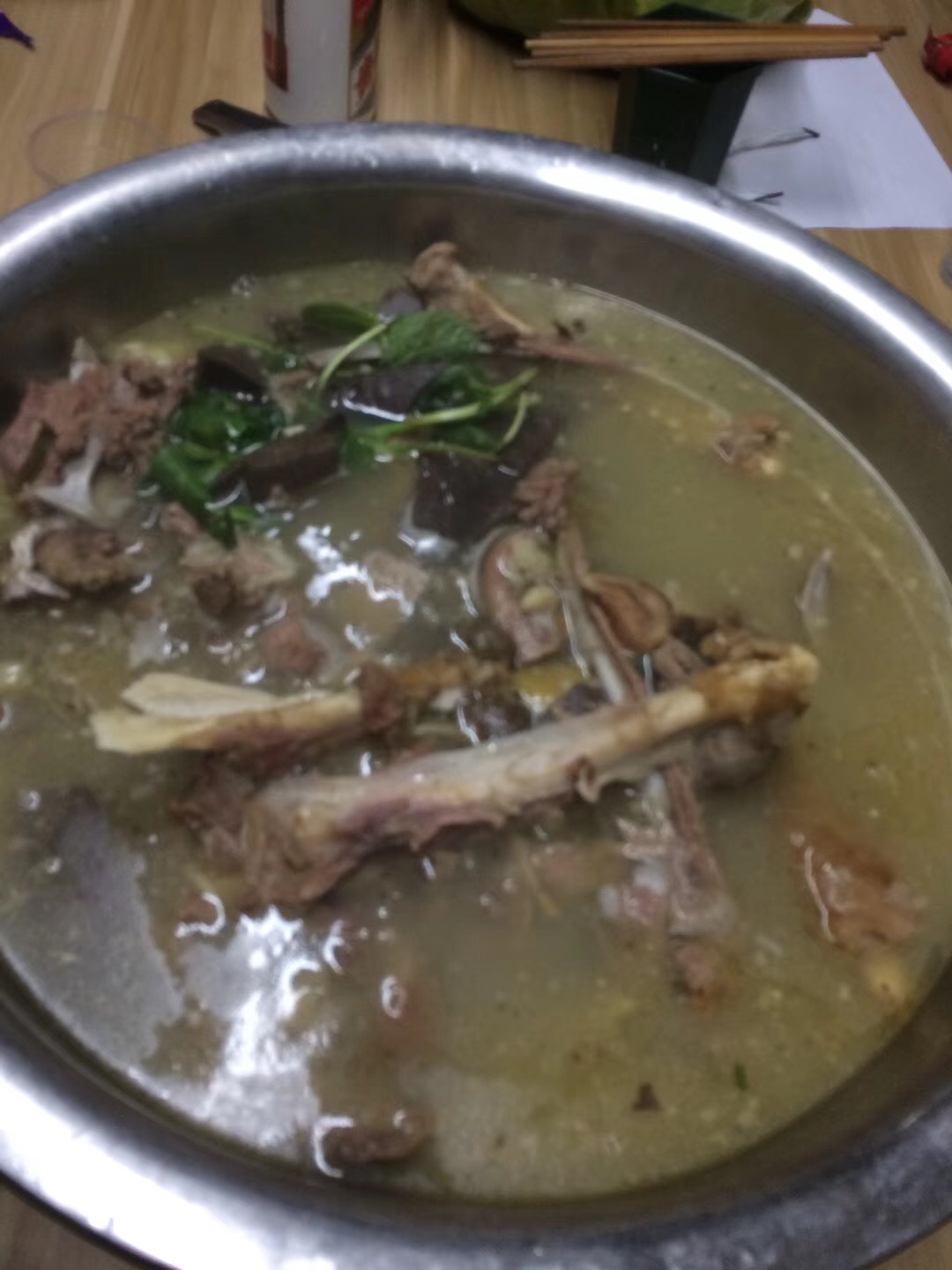 夜晚降臨,施工隊(duì)伍的羊肉也準(zhǔn)備好了,大家圍著羊肉火鍋,喝著羊肉湯,吃著羊肉,喝著茅臺(tái)。
